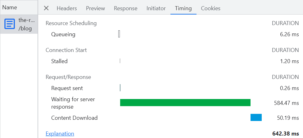 So, whenever comparing your TTFB with the timing characteristics in your DevTools, be sure to ignore the Content Download. The Content Download value might still be an indicator to towards your page health, inlined assets and discoverability of resources for example.But that's a topic that is not within the scope of this article.