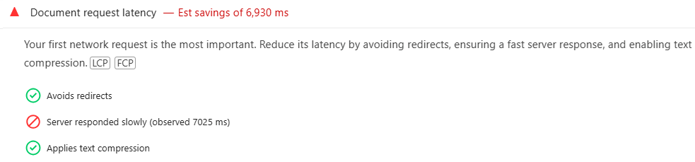 But this additional Lighthouse diagnostics and LCP breakdown is confirming that Lighthouse will detect slow TTFB, but not always reflect it in key metrics and will incorrectly attribute it in the LCP breakdown.